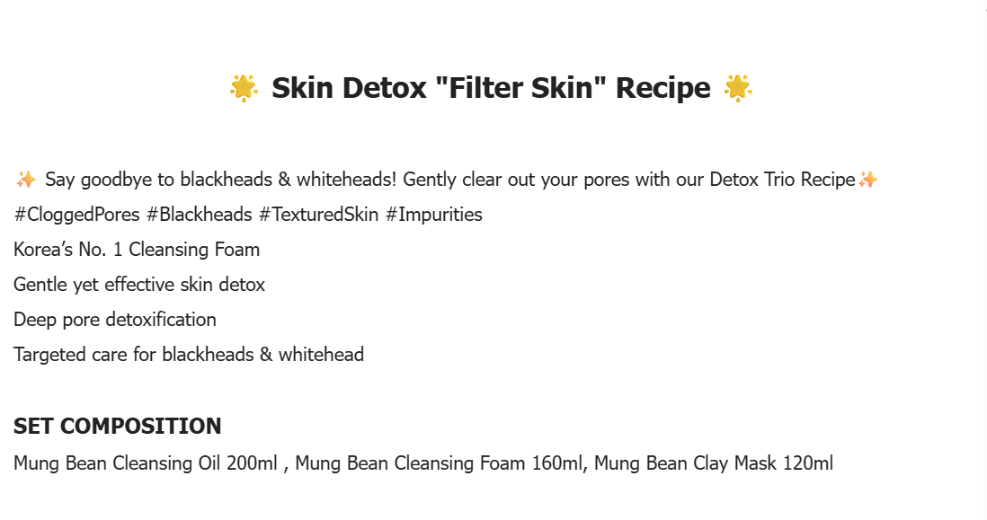 - Filter Skin Detox Recipe Trio Set: Cleansing Oil + Cleansing Foam + Clay Mask